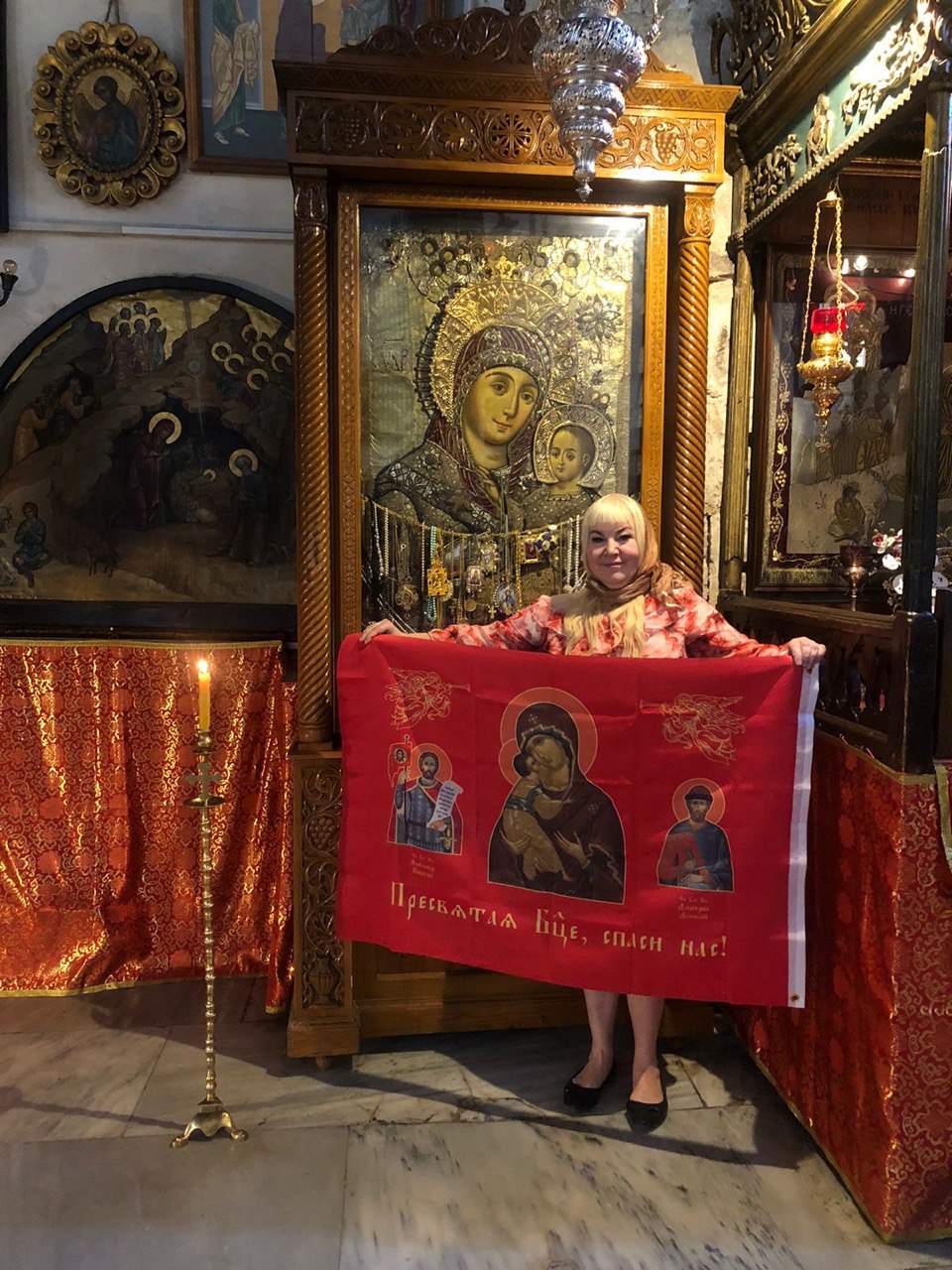 Святая Земля Вифлеем Место Рождества Христова и впервые освятили флаги и на месте Рождества Христова и у Вифлеемской иконы Божией Матери и при освящении флагов были и палестинские воины. Мы Русские с нами Бог!