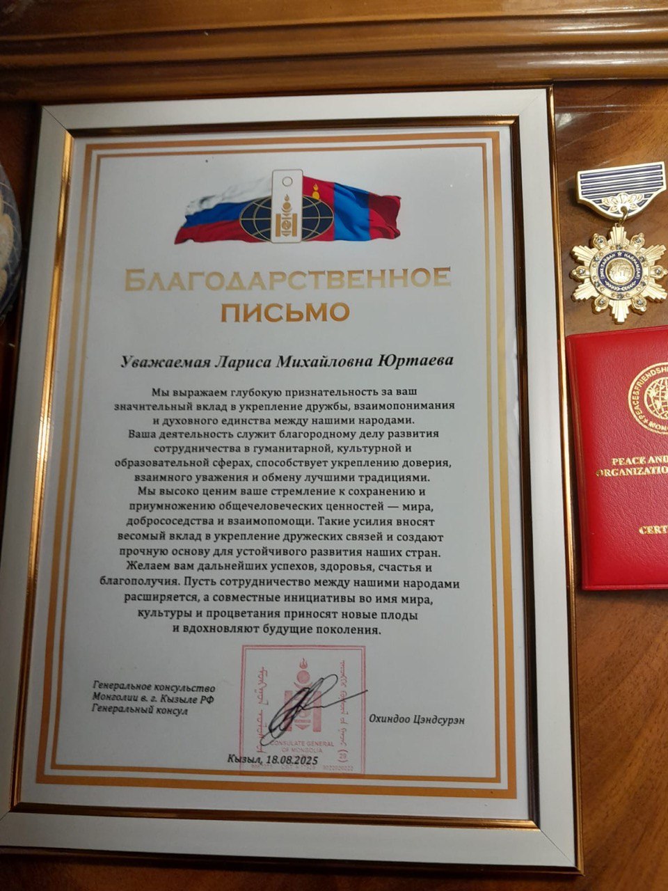 - Член Координационного совета Президентского клуба "Доверия" Лариса Михайловна Юртаева награждена Орденом "Дружба народов" от Президента Монголии