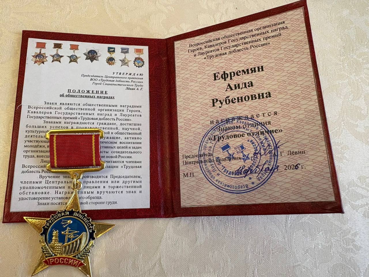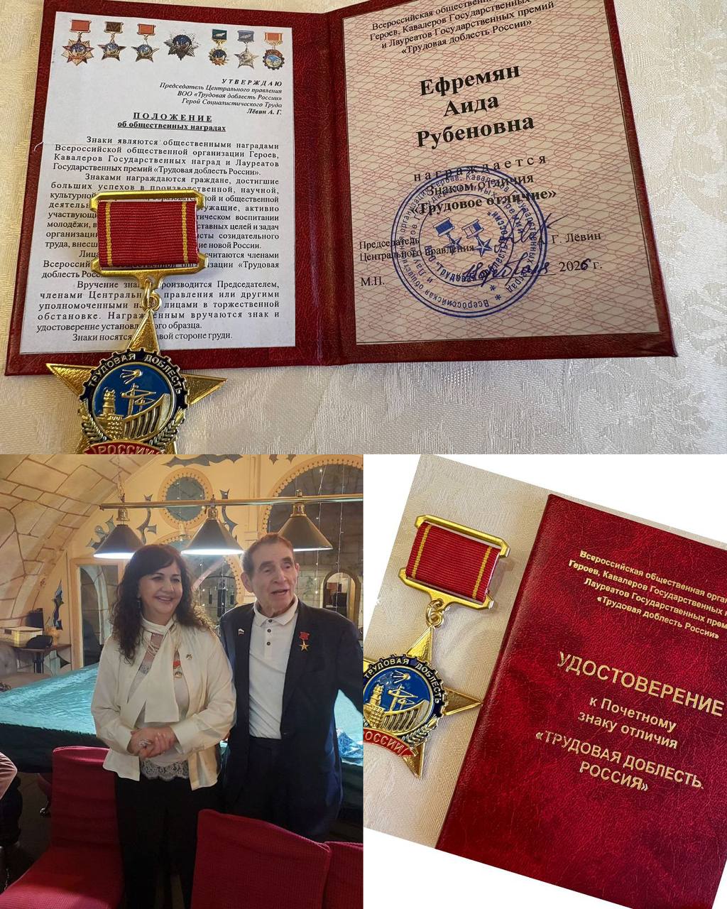 Действительный член Президентского клуба "Доверия", врач-валеолог, общественный деятель, вице-президент Союза Матери Милосердий, член Войсковой Православной Миссии, член фонда Женщины России, директор по связям с общественностью Ассоциации инвесторов "Культурное наследие" при содействии стран БРИКС, почётный член общественной организации "Трудовая доблесть России".