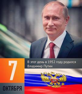 - 7 октября - День рождения Президента России и Верховного главнокомандующего Вооружёнными Силами России Владимира Владимировича Путина